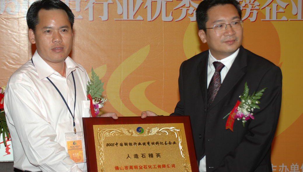 金石榮獲——中國櫥柜行業(yè)優(yōu)秀材料配套企業(yè)人造石精英大獎 2005-11-10 點擊: